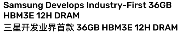 Samsung:Samsung Develops Industry-First 36GB HBM3E 12H DRAM