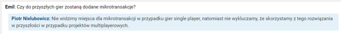 但这不代表CDPR完全抵制微交易:“我们不排除将来在多人游戏项目中使用这种解决方案。”