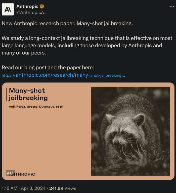 博客链接:https://www.anthropic.com/research/many-shot-jailbreaking