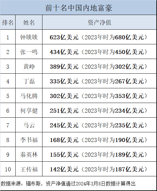 《福布斯》2024全球富豪榜:中国内地上榜富豪数量连续第三年下降