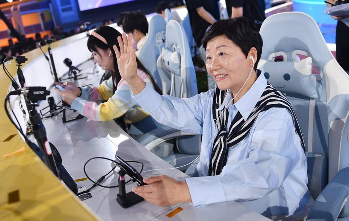 库麻和开心奶奶都登上了主舞台参赛,亲友团来到总决赛嘉年华现场一起游戏,对她们而言是很自然的事。