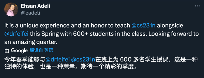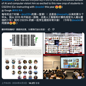 「这是自 Karpathy 和我 2015 年启动这门课程以来的第 9 个年头,这是人工智能和计算机视觉令人难以置信的十年!」