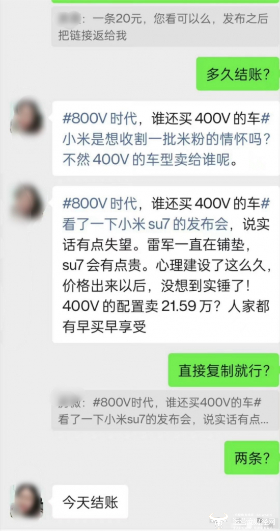 运营商财经网经搜索发现,网上确实披露了一些聊天记录,内容是针对如何“黑”小米汽车进行交易。但是由于聊天记录来源并不明确,其真实性有待考证。不过,就在小米SU7上市第二天,就因为投诉问题屡屡登上热搜。