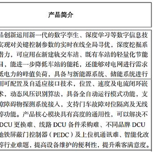 佳都科技自主研发的“基于混合模型和AI算法的智能环控节能控制系统”产品,创新运用了新一代数字孪生、深度学习等数字信息技术,可以实现对关键控制参数的实时在线全局寻优,深度挖掘系统的节能潜力,可应用在新建轨道交通车站、既有线车站的轻量化环控节能改造等项目,能进一步降低车站的能耗,还能够对电网进行需求响应,降低电力的峰值负荷,具备与新能源系统、储能系统进行协同控制的优势,实现车站绿色低碳节能;“自主化兼容型站台门门控单元(DCU)”产品采用可配置及自适应接口技术,位置、速度及电流闭环嵌套驱动技术,动态风压识别算法,具备全自动运行模式功能,支持门车间隙障碍物探测系统接入,支持门车故障对位隔离及无线调试运维等功能。产品核心模块具有高度的通用性,有效解决不同品牌单DCU更换难、进口设备DCU备件采购难、不同品牌DCU更换时与地铁屏蔽门控制器(PEDC)及上位机通讯难、智能化改 造升级难等行业难题,提高设备维护的便利性,提升运营安全,降低运维成本。