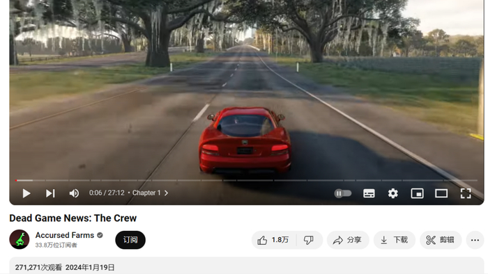 这一切都被Scott看在眼里,这位油管博主本就十分关心停服游戏的相关新闻,在去年12月育碧公布《飙酷车神》即将停服之后,Scott就持续关注着这件事,他将这件事评价为“可能是所有停服游戏中最明显的侵犯消费者权益的案例”,并表示自己正在认真考虑起诉育碧的可能性。