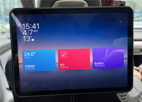 另外, SU7 后排可以用 iPad 控车, iPad 连到车辆热点,再进到投屏的 APP 里,可以调节空调和座椅,但关空调只能关掉后排,同时还可以播放音乐。