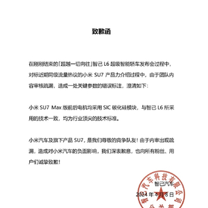 标错小米SU7 Max参数 智己汽车正式向小米道歉