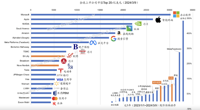 从上面的全球上市公司市值排行不难发现,全球Top20市值的企业几乎清一色都是高科技企业,都是最能代表时代大趋势的企业。