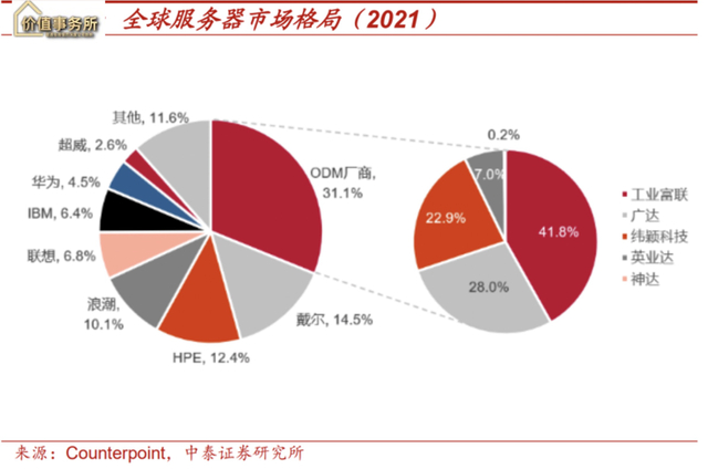 就说云计算业务,板块整体收入1943.08亿元,同比下滑8.54%,但这主要是受传统服务器业务去年整体表现糟糕拖累,对比一下联想集团和戴尔的业绩就很清楚了。但即使如此,工业富联依然贵为全球服务器代工龙头。