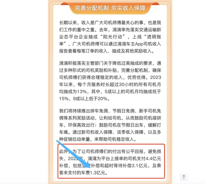 另据官方提供的数据显示,2022年滴滴为平台上接单的司机支付4.4亿元补偿,其中乘客未支付的车费高达1.3亿元,滴滴也全额垫付给了司机。