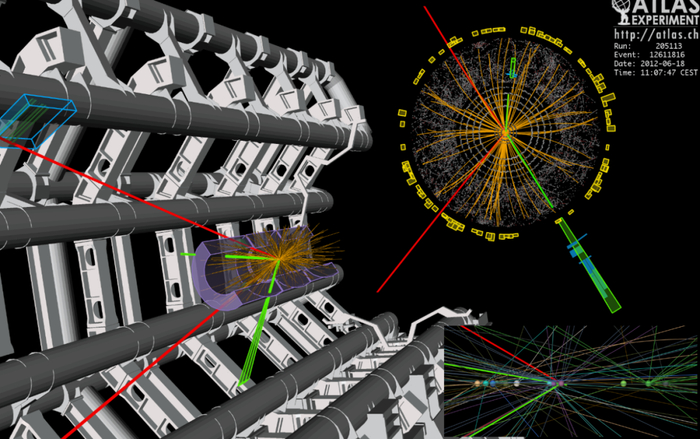 多年来,寻找希格斯玻色子一直是物理学的「头号悬案」。著名物理学家霍金甚至和别人打赌它们并不存在。各国科学家竞相追逐,投入巨资建造大型粒子对撞机,制造极高能量的粒子碰撞,希望从亿万次碰撞中寻获希格斯玻色子的踪影。这个过程就像在干草堆里找一根针,需要过人的智慧和毅力。2012 年,欧洲核子研究中心 (CERN) 的科学家们终于用大型强子对撞机发现了希格斯玻色子的证据。