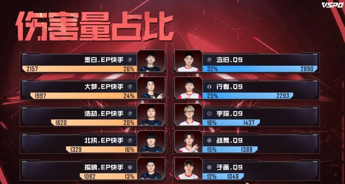 总决赛两队选手输出占比对照