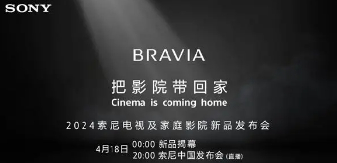 索尼中国正式发布预告,宣布2024年索尼电视及家庭影院新品发布会将在4月18日晚上20:00举行。