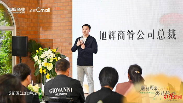 活动当日,旭辉商业总裁彭沛锡先生致辞并介绍,近年来,旭辉商业持续推进产品和运营创新,已在北京、上海、成都等城市布局商业综合体32座。其中,成都温江旭辉Cmall作为温江大学城区域首个大型TOD商业综合体,致力于打造乐活潮趣新中心,为消费者带来一种新的生活方式和消费体验,成为城西商业新地标。随后,成都温江旭辉Cmall项目负责人黄廷雄对项目开业筹备进行了分享。截止目前招商进度已超90%,引进超240家国际/国内优质品牌,其中首店率达30%。