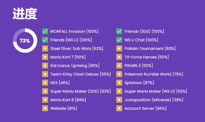 在Pretendo官网里,每一款游戏都能查到具体的施工进度。