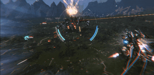 而变形机虽然动画流畅,飞行爽快,但转向略显死板,加之部分“功能动画”有帧数缺失和不流畅的问题,导致游戏依然有着一定的“粗放感”。一定程度上。这是制作组为了凸显战场氛围的设计,但在玩家体感上仍有可以改进的空间。