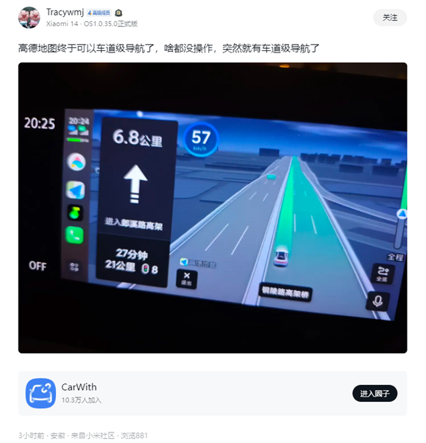 对标苹果Carplay!小米CarWith上线高德地图车道级导航