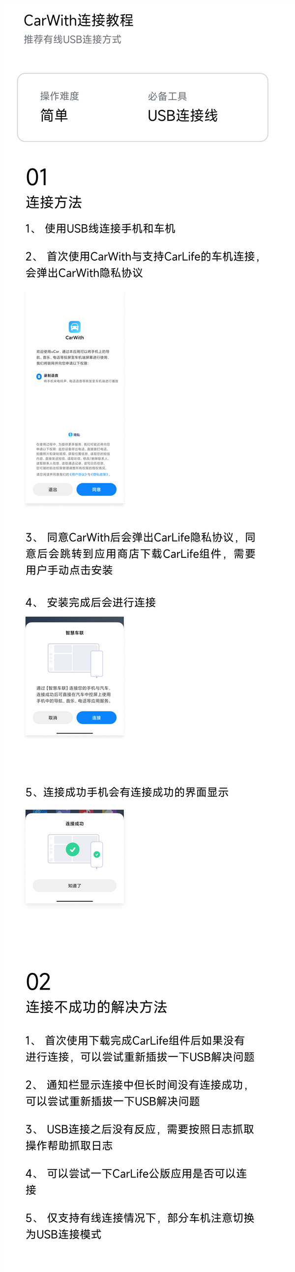 同意CarWith后会弹出CarLife隐私协议,同意后将跳转应用商店下载CarLife组件,手动点击安装完成后即可连接。