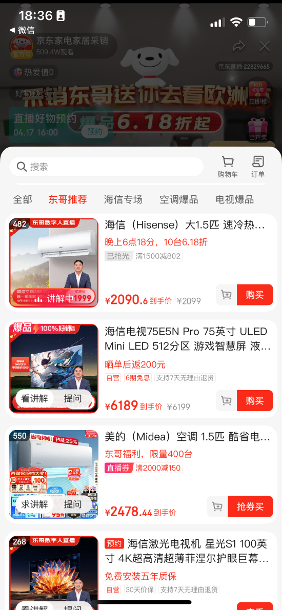 新浪科技讯 4月16日晚间消息,4月16日晚6点18分,刘强东AI数字人(以下简称为AI刘强东)在京东开启了直播,新浪财经了解到,AI刘强东可以在直播过程中与粉丝互动并读留言,其在直播过程主要推荐了空调、电视产品,将推荐4款海信产品,以及少量美的、创维、华凌、奥克斯、TCL的产品。