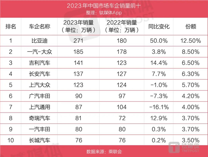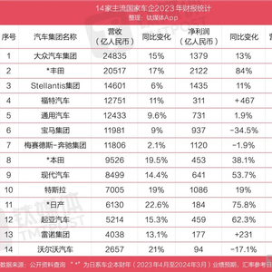 俗话说,“家中有粮,心中不慌”。近期,随着中美日欧等全球主流车企陆续公布了2023年的业绩表现,我们可以从中窥见各家在2023一年的收成如何,谁家的赚得盆满钵满,谁家的钱袋子已瘪了。在新能源转型席卷全球的背景下,钱袋子的分量大小,是衡量汽车厂商未来数年能否打赢电动化这场硬仗的重要因素。钛媒体App统计了14家主流国际车企和12家国内主要车企的2023年财报,发现论赚钱能力,国际车企可谓是“遥遥领先”于国内车企,但要论在新能源汽车领域的表现,国内车企明显压过国际车企一头。随着越来越多的消费者将新能源汽车视为购车首选,国内车企在全球市场的存在感有望进一步获得提升。国内车企VS国际车企的电动化竞赛,将会成为未来几年全球汽车市场的主旋律。那么,从已公布的2023年财报来看,国内车企VS国际车企的竞争戏码,发展到了哪一阶段?国际车企:赚钱能力“遥遥领先”从已公布的财报来看,2023年无疑是国际车企大丰收的一年。欧美日韩等国际汽车厂商,年营收全部收获了增长成绩,净利润也普遍实现大增。首先是汽车巨头众多的欧系车阵营,包含大众、宝马、奔驰、雷诺、Stellantis、沃尔沃等全球有名的欧洲六大汽车制造商。其中大众汽车集团的营收“遥遥领先”,这家管理着大众品牌、奥迪、保时捷、兰博基尼的老牌汽车巨头,2023年实现营收2.5万亿人民币,同比增长15%,是全球营收能力最强的车企;同时还实现了净利润1379亿人民币,同比增长13%。但要说谁才是赚钱能力最强的欧洲车企,Stellantis集团当仁不让。这家由标致雪铁龙集团和菲亚特克莱斯勒组成的汽车联盟,2023年实现净利润1435亿人民币,同比增长11%,位居欧洲车企之首。兼具法国、意大利和美国基因的Stellantis,其超强盈利能力主要得益于联盟内各企业之间产能、平台和技术之间的协同,使其达到12.8%这一全球车企第一的营业利润率。2023年,Stellantis实现营收1.5万亿元,同比增长6%,位于大众和丰田之后。