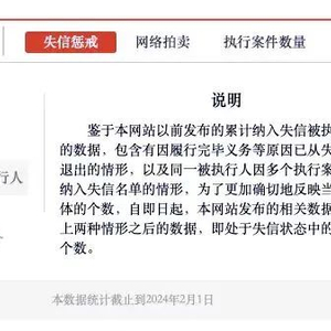 中国执行信息公开网数据显示,截至 2024 年 2 月 1 日,失信被执行者达 839 万人。