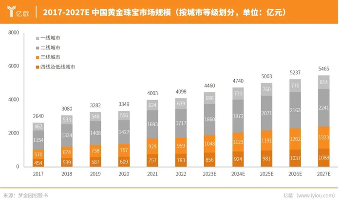 “梦金园们”赚钱难赚钱难的并不止梦金园一家,虽然当下外部金价持续上涨,但金饰品牌们却不如往昔能“躺赚”,根本原因是黄金市场的消费人群变了,购买偏好和渠道都发生了变化。近年来,“小镇青年”正接棒“中国大妈”,成为黄金消费的中坚力量。根据天猫发布的《2023珠宝饰品行业趋势白皮书》(以下简称“白皮书”),黄金首饰消费者以18-34岁的女性为主,其中00后消费热情尤其明显。影响年轻一代购买决策的因素亦发生了变化。越来越多的年轻消费者购买黄金珠宝是给自己佩戴,并非为了送礼、节日、婚庆等特定消费场景。因此他们看重质价比,品牌忠诚度并不高。于是,年轻人潮水般涌入“没有中间商赚差价”的深圳水贝。在这里购买金饰,是按照“当日国际金价+工费”来计算,每克售价比品牌金店便宜100多元。不仅如此,消费者还可以自由选择款式和重量,一条项链从设计、制作、到选配,最多只需花费20分钟。因此“水贝模式”很快在年轻人中风靡,甚至催生了一批“水贝黄金代购”。金饰品牌们还面临另一个挑战:年轻一代对产品工艺、设计审美也提出了更高的要求,倒逼品牌们卷设计、卷工艺。不同于“大妈”式千篇一律的审美,年轻人更注重黄金首饰的款式、设计、工艺。白皮书显示,在款式设计上,超六成消费者认为只要自己觉得好看就行,有三成消费者喜欢DIY款和多材质融合的组合设计款。因此,品牌和商家不仅需要注重黄金饰品的品质把关,还应推动产品的多样化设计,满足不同消费者的个性化需求。但靠工艺和设计难以形成足够高的壁垒,即便各大品牌都试图用“独特”的产品争夺年轻人眼球,同质化的现象依然普遍。比如将设计、工艺与传统文化元素紧密融合的“古法金”,近年来在黄金饰品消费市场中逐渐走俏后,很快成为各家产品的“标配”。2016年,老铺黄金在金饰和金器产品中采用古法金工艺;2018年,周大福也推出大爆款传承系列古法金饰品;此后,老庙黄金、周大生、老凤祥等黄金珠宝品牌都开始在产品中融入古法金工艺。眼看着从品牌溢价、工艺设计上赚钱越来越难,“梦金园们”只好将重心放在市场份额的争夺上,这也意味着品牌们要不断地争抢地盘。他们将目光放在了消费能力不断上升的低线城市。周大福早在2018年就开始推广“新城镇计划”,2019年提出主攻较次级城市和县级城镇;拥有5000多家店的周大生珠宝,三线及以下城市门店比例达70%;六福集团也在2023年初表示,门店数量达到3000家后将向四五线城市扩张……低线城市也是梦金园的主阵地。招股书数据显示,按三线及以下城市的黄金珠宝收益(不包括金条)计算,梦金园在中国黄金珠宝品牌中位列第三。对于扎根下沉市场的梦金园而言,一方面是“水贝模式”的疯狂内卷,另一方面是“周大福们”的降维打击,梦金园想要守住自己的市场份额绝非易事。