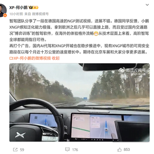 IT之家 4 月 18 日消息,小鹏汽车 CEO 何小鹏今日分享了智驾团队在德国拍摄的高速 NGP 测试视频,并称当前“进展不错”。