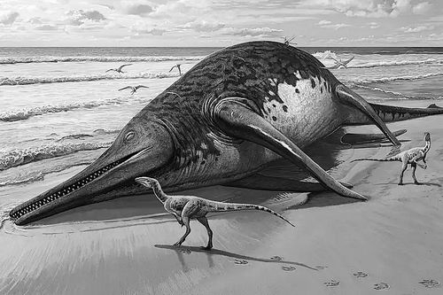 这些遗骸可以追溯到大约2.02亿年前。之后,一场大规模全球生物灭绝事件的发生,导致包括巨型鱼龙在内的许多物种灭绝。