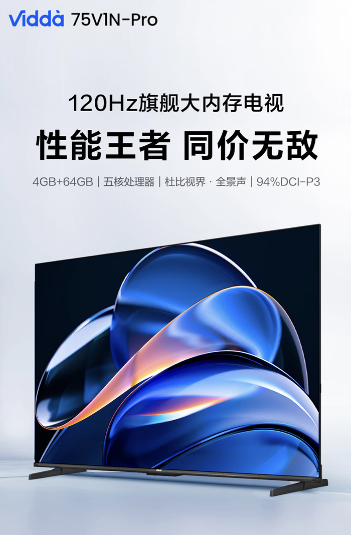 海信推出 Vidda 75V1N-PRO 75 英寸电视:4K 120Hz,3699 元