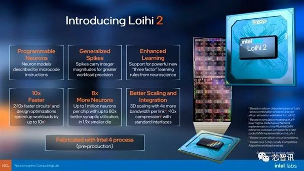 Loihi 2可以根据神经元模型要求,最高分配4096个变量状态。这些方面的提升,使得Loihi的处理速度达到第一代Loihi 的10 倍。