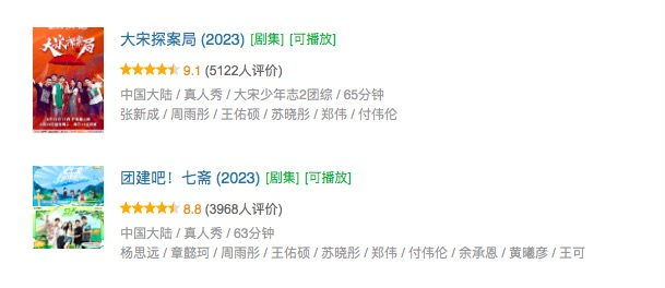 从数据层面来看,这两年市场产出的售后团综也不乏热度、口碑上佳的。比如《宁安如梦》团综在爱奇艺站内热度突破8130,《团建吧!七斋》和《大宋探案局》豆瓣评分分别为8.8和9.1分,远超两季电视剧本身。但坦白来讲,饶是各大平台倾力布局,剧集团综仍未产生真正的“出圈”作品。