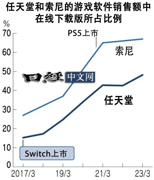 不过,业绩低迷的原因并不仅仅只是这两款机型的销量不佳。当时,任天堂的数字化应对步伐落后。在Switch刚上市的2016财年(截至2017年3月)的软件销售额中,在线下载版软件所占的比例仅为15%。比开发PlayStation的索尼集团低12个百分点。