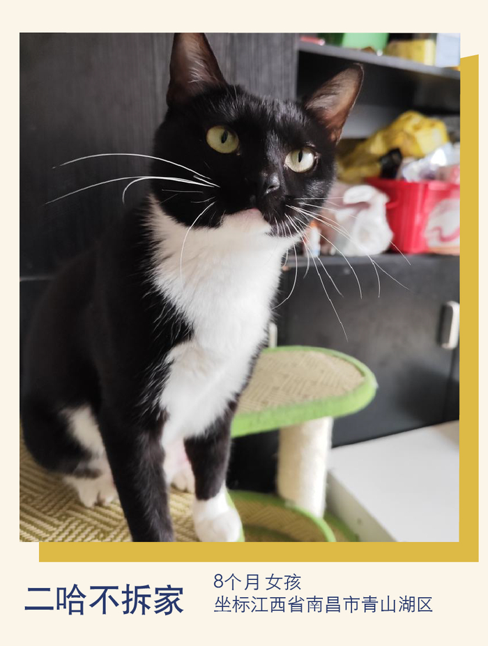 救助经历:喵喵界二哈不拆家,黑白分明,奶牛中的极品色“乌云踏雪”,性格活泼,正是好玩的年纪,跟猫狗同伴都能友好相处。想给家里增添热闹的朋友看过来,小猫咪的陪伴会让生活不再孤单~