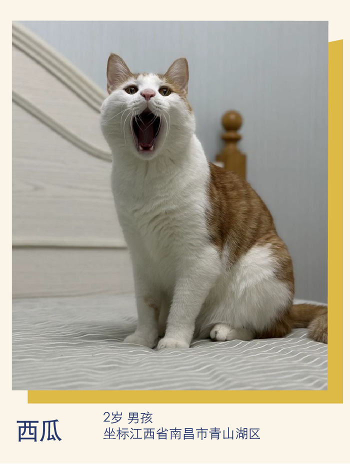 救助经历:被水果店扔出来的傻孩子(据说是从小养来抓老鼠的,店铺到期不开了就卸磨杀驴了),救助后给它做了绝育打了疫苗。西瓜太亲人了,脾气又好,救助站其它猫打它的时候只知道哭不知道跑,更别说还手。在外面流浪肯定会被别的猫欺负。西瓜活泼可爱、亲人温顺,希望它能回归家庭,过上被人宠爱的生活。