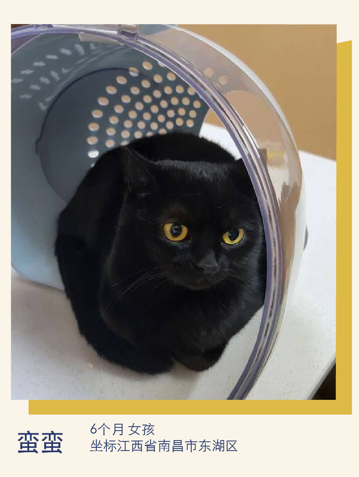 救助经历:蛮蛮是一只亲人的甜心小黑咪,第一次发现她是在小区的花坛里,在一群流浪猫中显得格外耀眼,像只走丢的家猫。在小区群内发帖寻主人无果后,好心人把她带去宠物医院洗澡并做检查,发现身体很健康并且疫苗已打全,进一步证实蛮蛮原本是被家养的。蛮蛮很乖巧,特别喜欢拿头蹭人,性格软萌亲人,希望她能早日遇到心软的神~