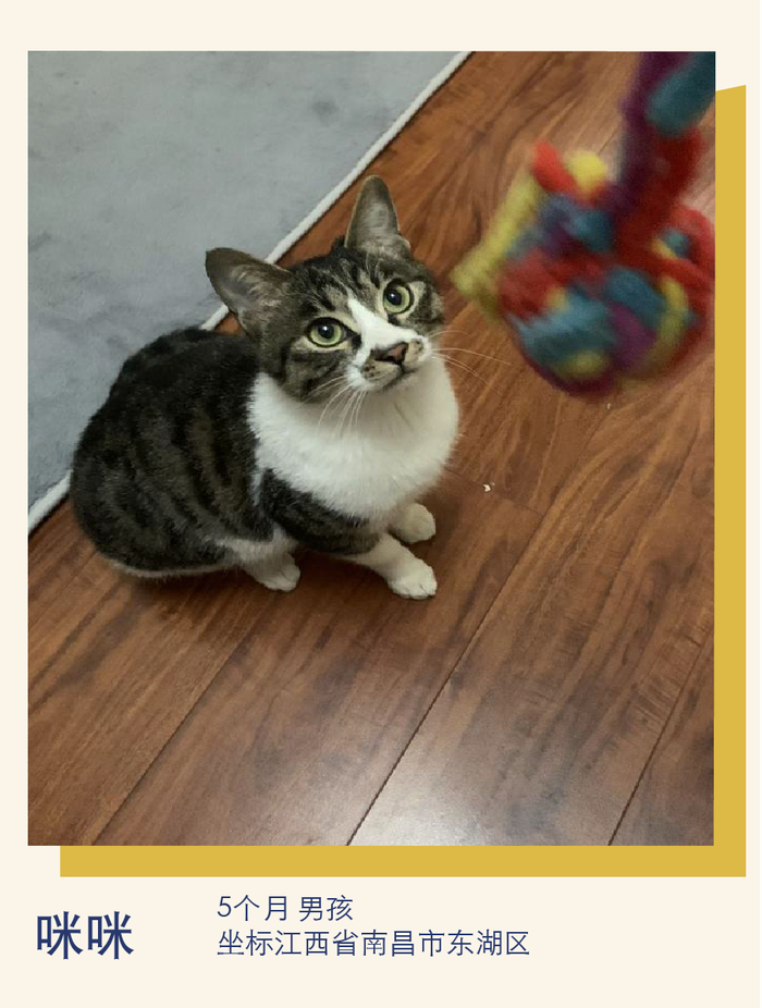 这一期,我们为大家带来了5只来自南昌的小猫咪。如果身在江西的你对它们感兴趣,并且符合基本的领养条件,欢迎添加相关联系人,询问领养事宜。