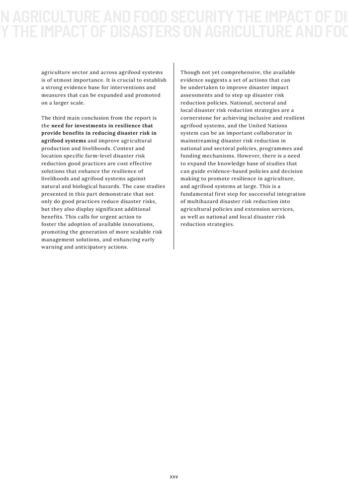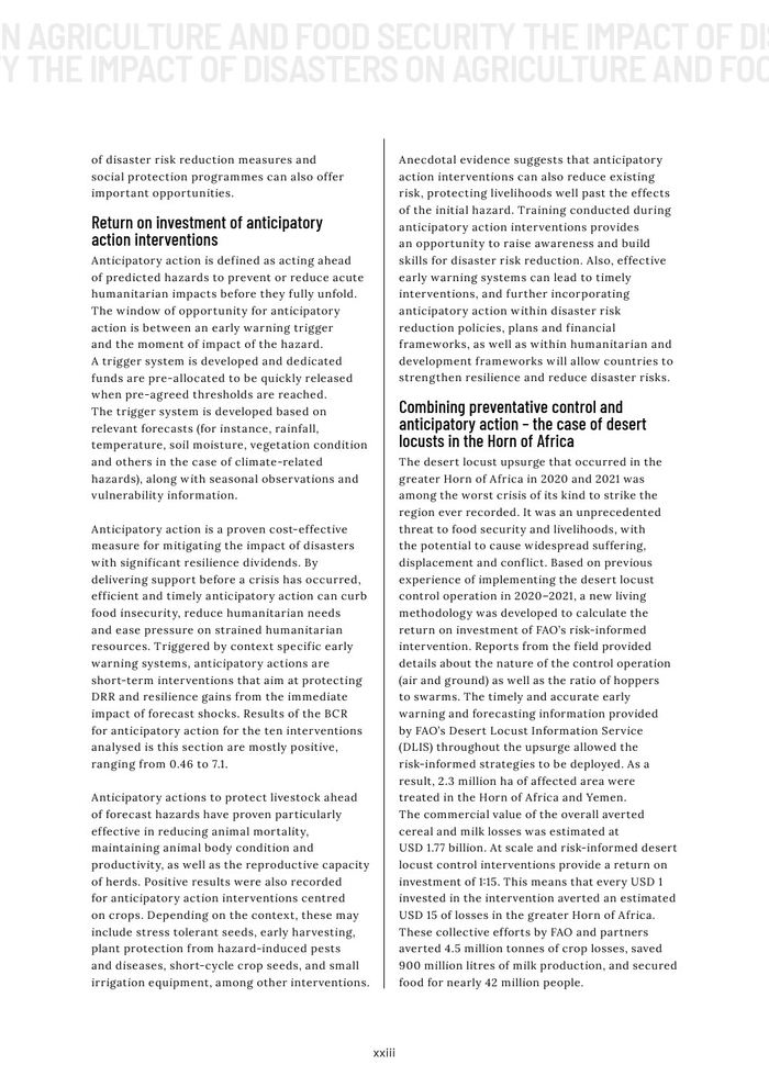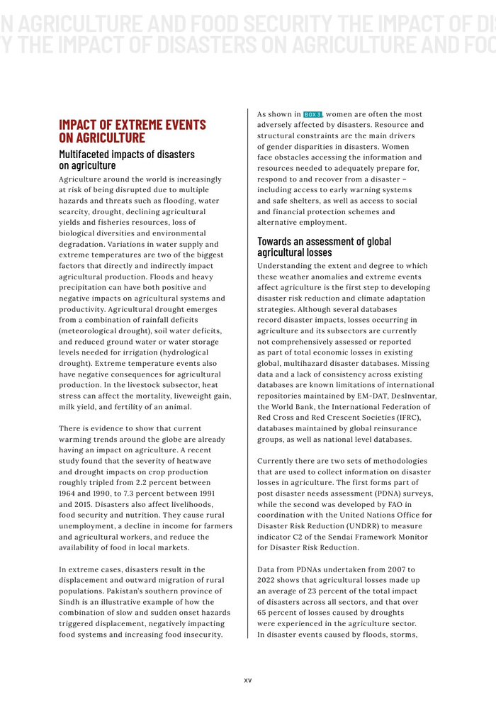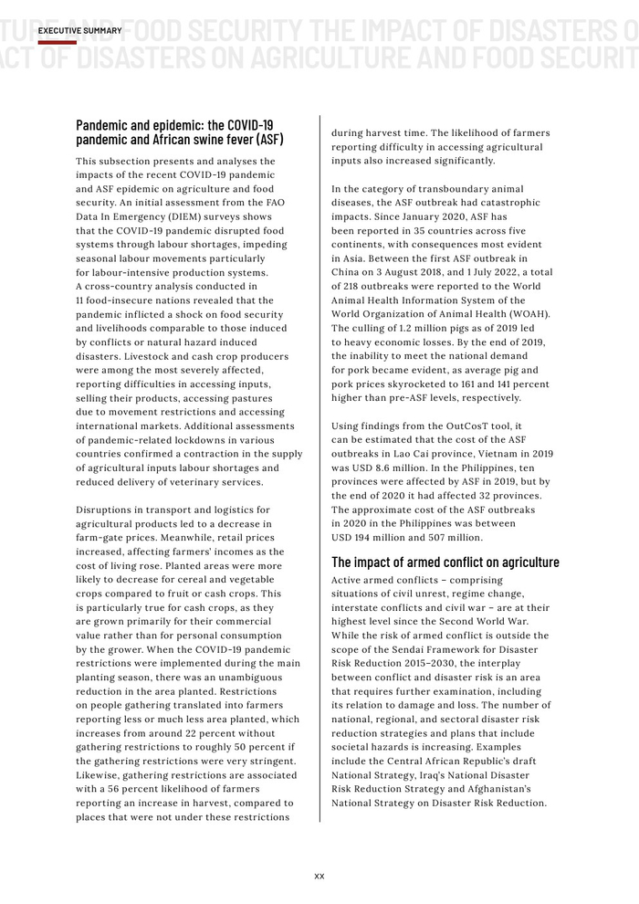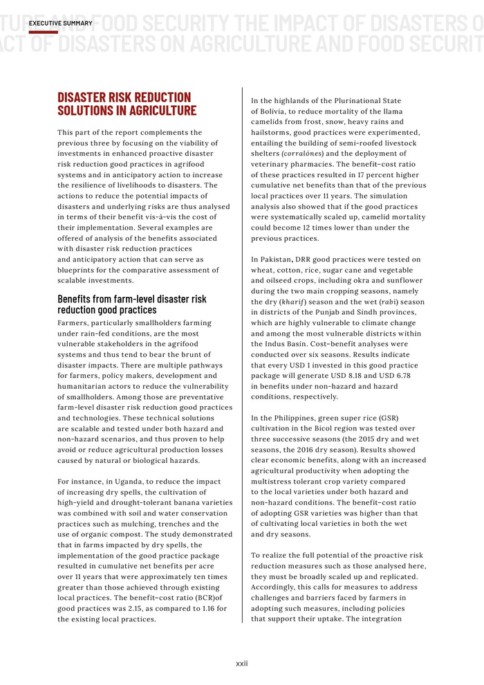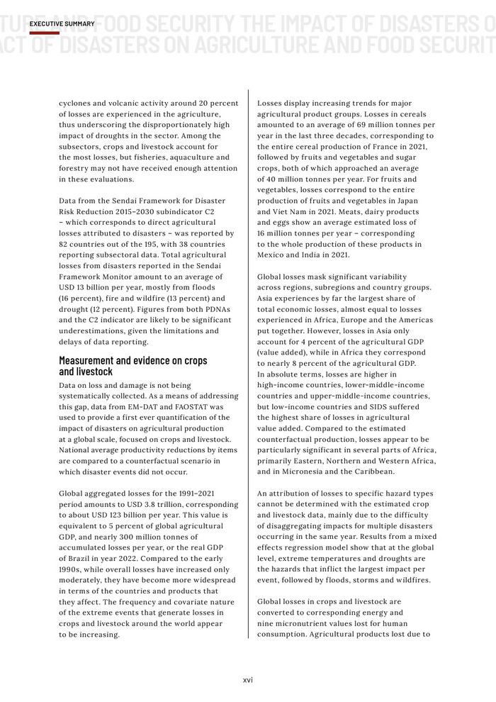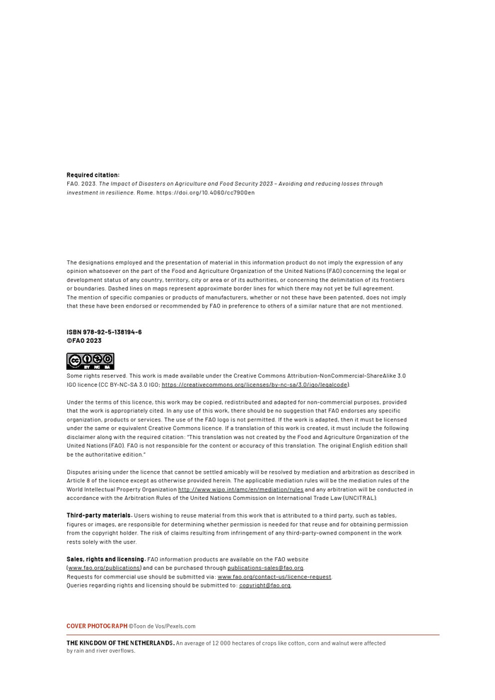 粮农组织的报告作为其促进更具包容性、抗灾能力和可持续性的农业未来的持续承诺的一部分。本报告旨在组织和传播有关灾害对农业影响的现有知识,以促进在减少灾害风险方面的循证投资。