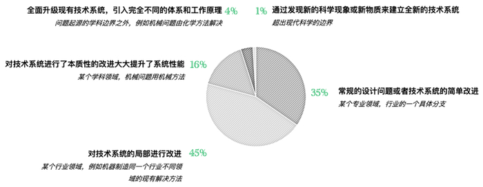 剩下的20%其实很少了,16%是对整个系统做了一个本质性的改进,是上升到学科领域的,剩下的两个类别更多的是科学探索的前沿,只能在实验室里找答案了。