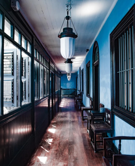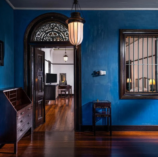 蓝屋是马来西亚现存最大的中西合璧园林式住宅,共有5个天井庭院、7道楼梯、38个房间、220扇手工木雕百叶窗。2000年,蓝屋荣获联合国教科文组织亚太区文物古迹保护卓越项目奖,2011年入选《孤独星球》旅行指南丛书评选的“世界十大豪宅”之一。蓝屋也曾是第65届奥斯卡最 佳外语片《情证今生》、好莱坞大片《疯狂的亚洲富豪》和国产片《夜•明》等电影的取景地。