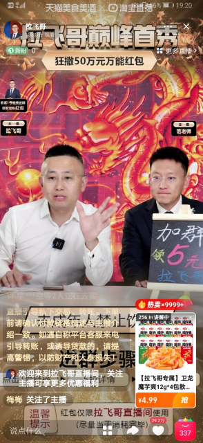 淘宝酒水直播再添“猛将”,拉飞哥首秀达成“1个小目标”