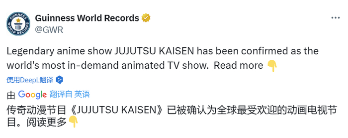 这之后的故事大家应该也都见怪不怪了,越来越多舍得砸制作资源、砸宣发资源的动画在全球范围内收获好评,去年MAPPA员工们燃烧生命打造的《咒术回战第二季》前不久还喜提吉尼斯世界纪录,《怪兽8号》的制作委员会估计也看眼红了吧。