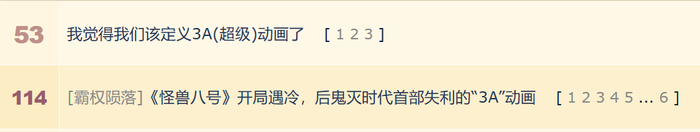 《怪兽8号》这场耻辱性的大败并没有成为这几天动漫界最大的话题,因为本来就没多少人看了这部作品。而在为数不多的讨论贴里,“3A动画”的标签为了《怪兽8号》失利的罪魁祸首。