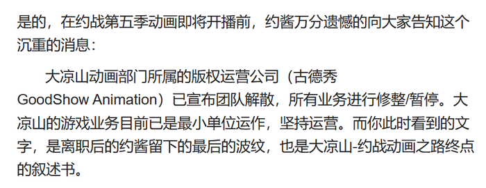 大凉山动画部门所属的版权运营公司GoodShow Animation宣布解散,游戏业务也仅仅只能保留最小单位运作,用于维持手游的日常运营。