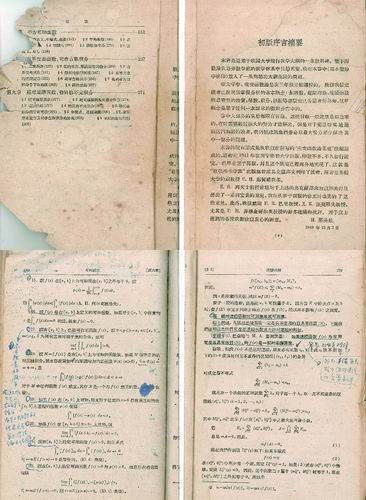 在整理实物资料过程中,我们特别注意到一本书页发黄、没有封皮的数学专业书籍,由于被翻阅的次数太多,书皮已经完全脱落,书的正文前面仅剩目录,且破损严重,找不到书名、作者、出版社以及出版年份。翻开书的内部,里面写满了学习时留下的批注,可以看出,王长钰倾注了大量精力学习、研究这本书。