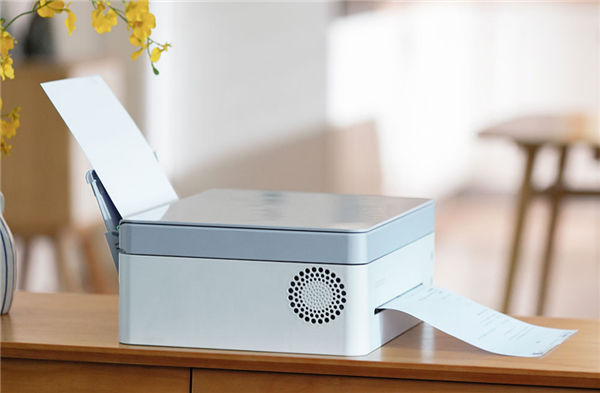 外观上,小新熊猫打印机Pro设计美观又轻巧,适合家庭和会议室使用,重量仅有6.5kg,提供西岭白、青山灰两款配色。