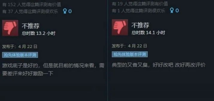 值得注意的一个细节是,在游戏尚未优化前,许多玩家即使尖锐地指出游戏的种种问题,甚至给出了差评,但多数评论的言辞间依旧暗示了这个游戏可能拥有的潜力,比如: