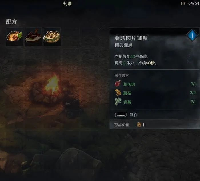 《恶意不息》在战斗时的回血道具,依靠的是玩家在探索地图时搜寻素材,并在篝火烹饪成食物之后获得。
