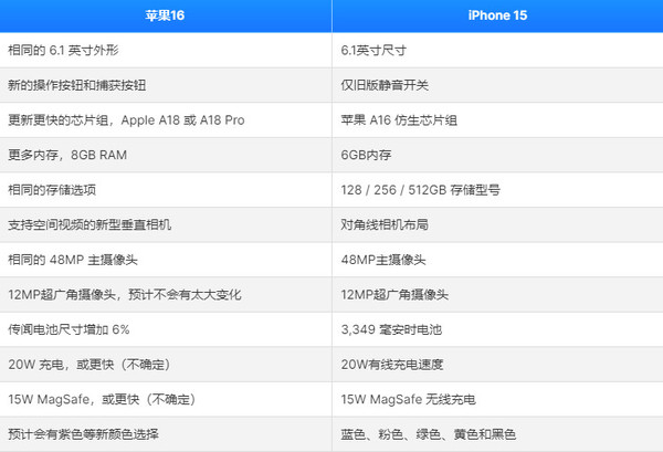 iPhone 16对比iPhone 15有哪些不同 三分钟给你讲明白
