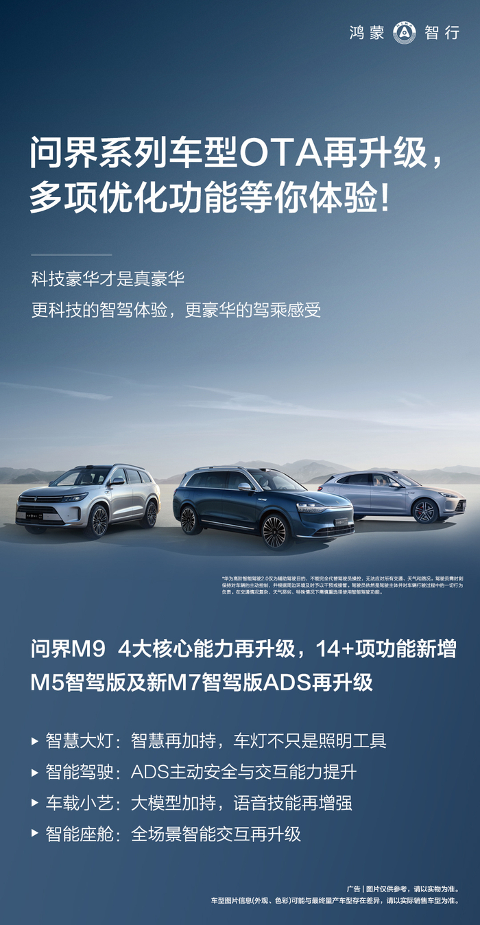 问界系列车型迎 OTA 升级:更聪明的小艺、更优秀的 ADS