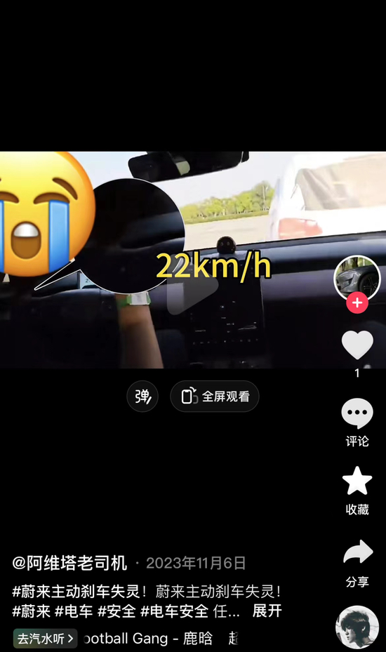 有博主测试蔚来ET5的AEB,结果是时速80公里可成功刹停。